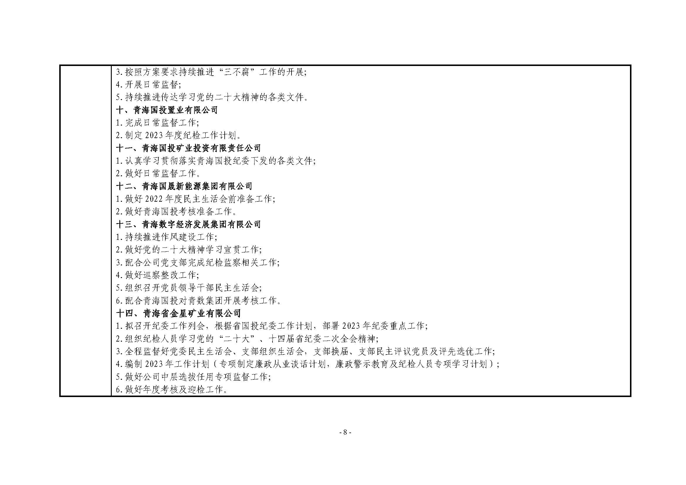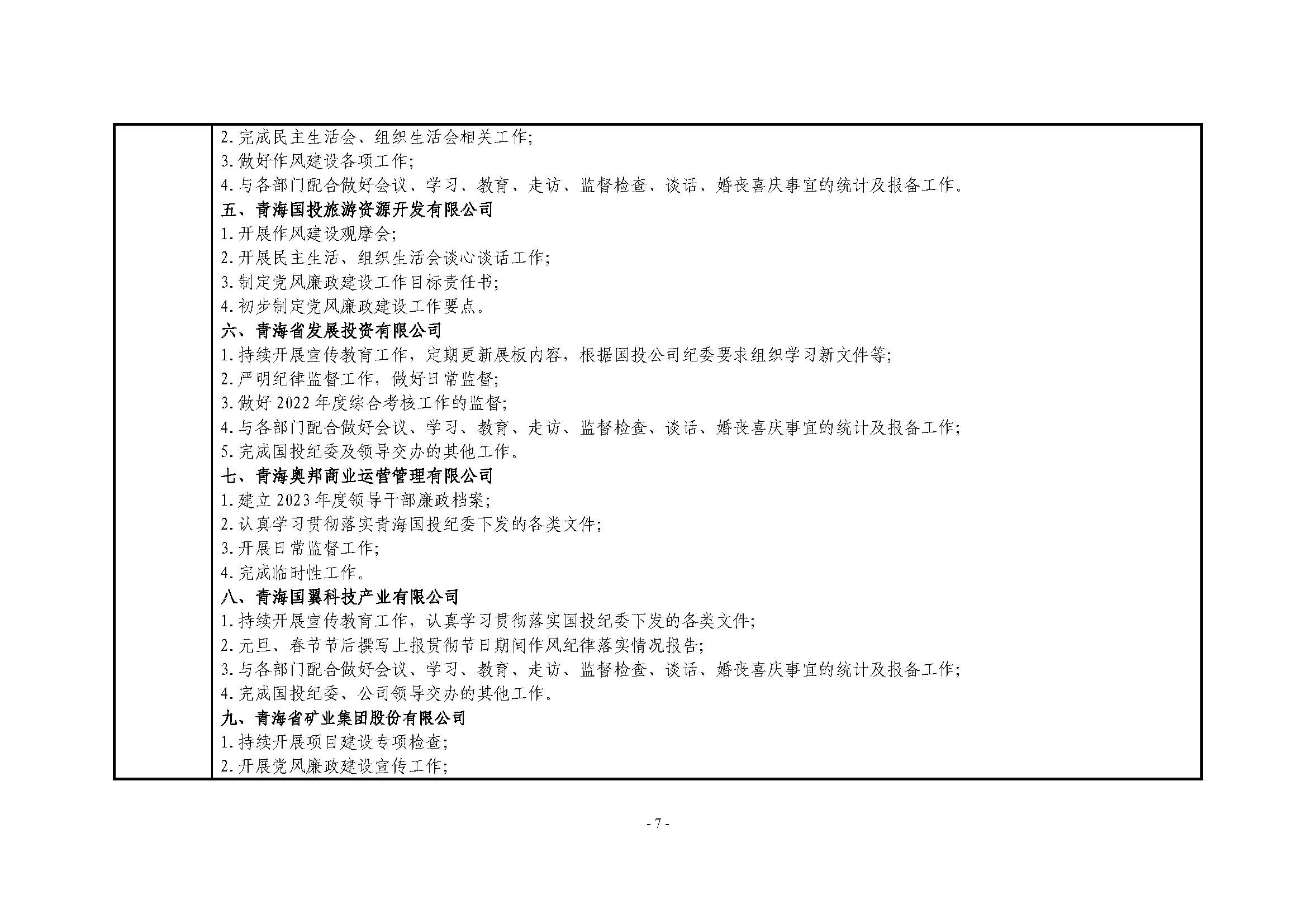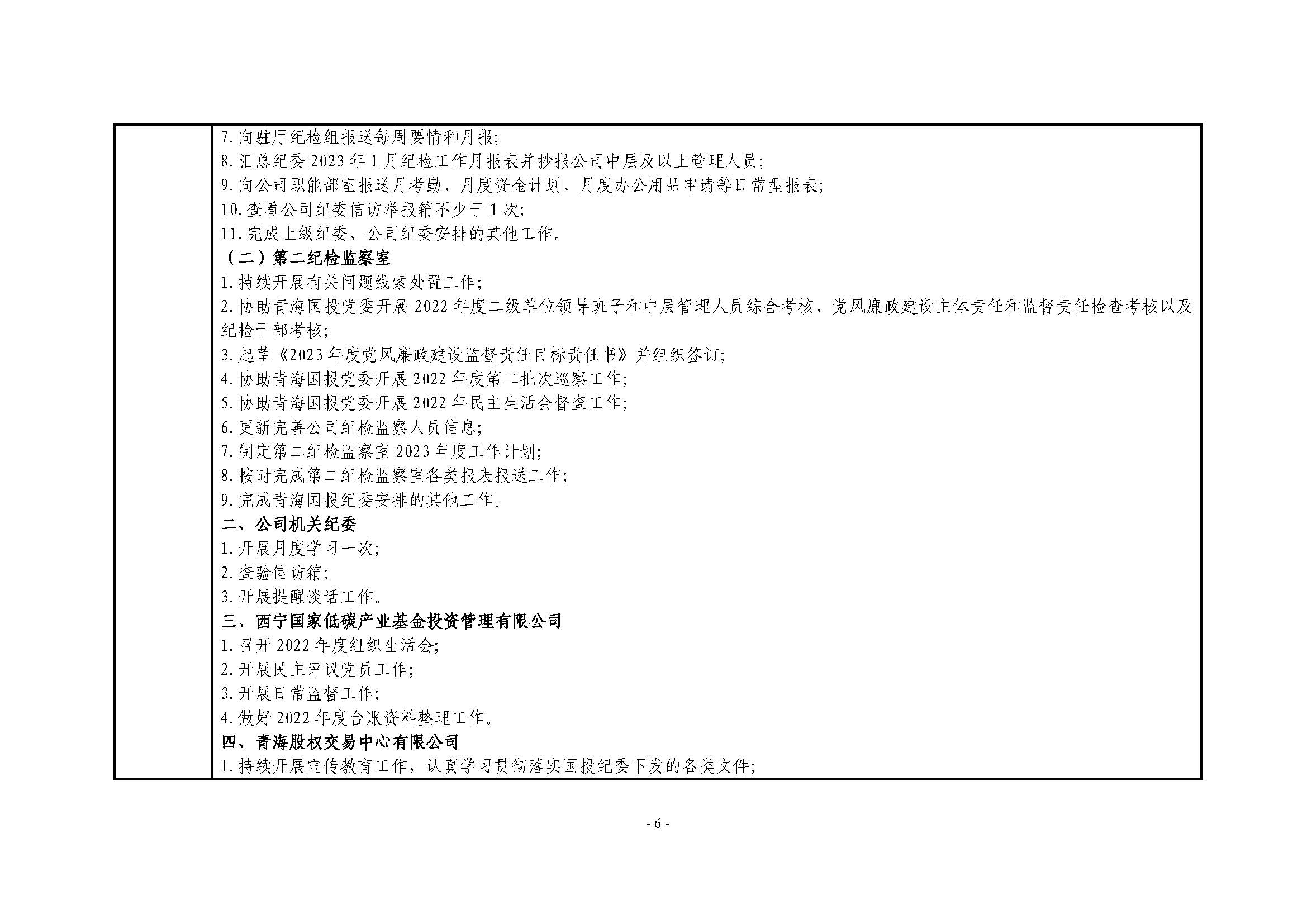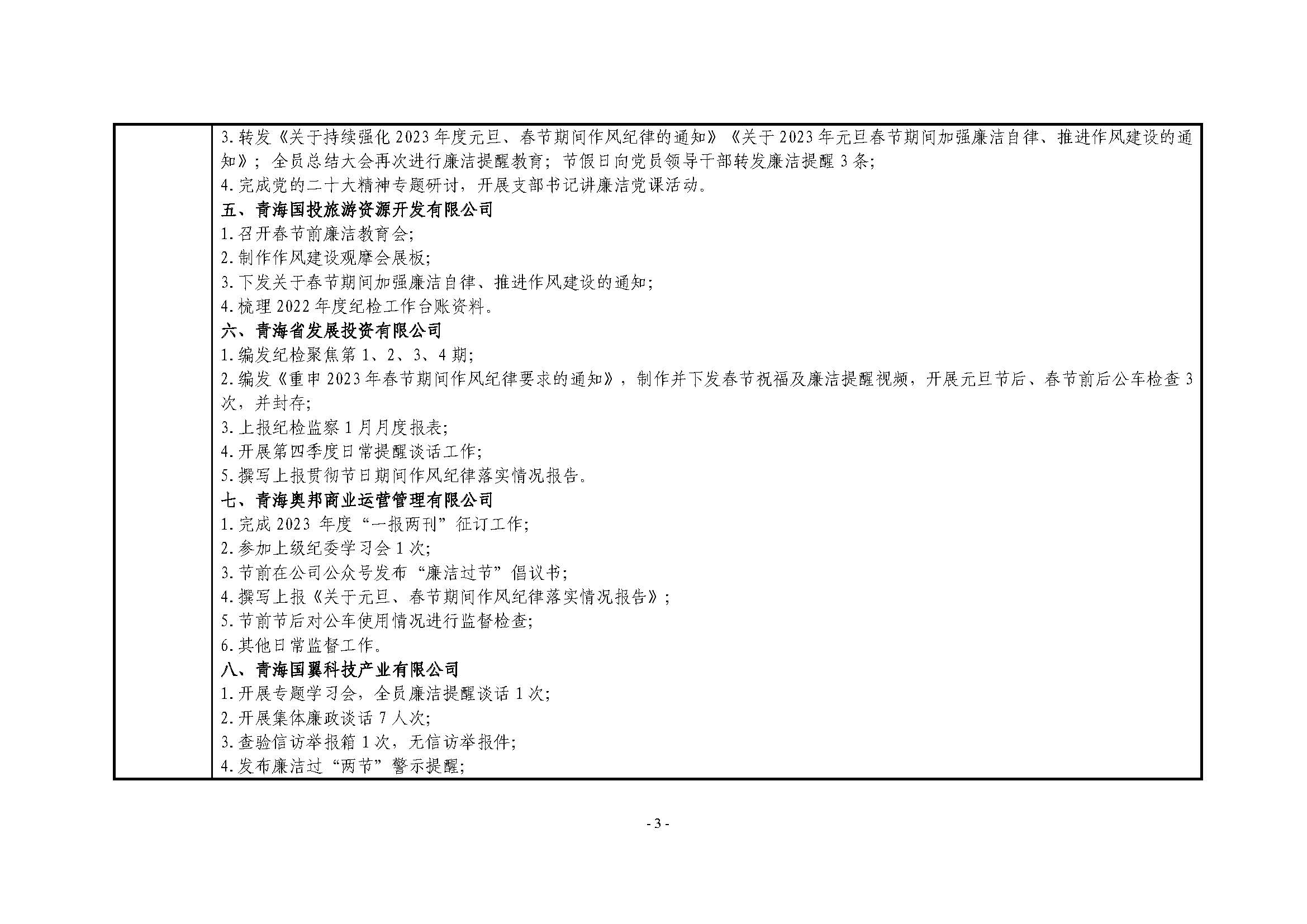 青海国投纪委2023年度纪检监察工作1月份报表
