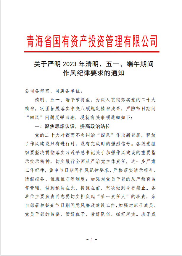 关于严明2023年清明、五一、端午期间作风纪律要求的通知